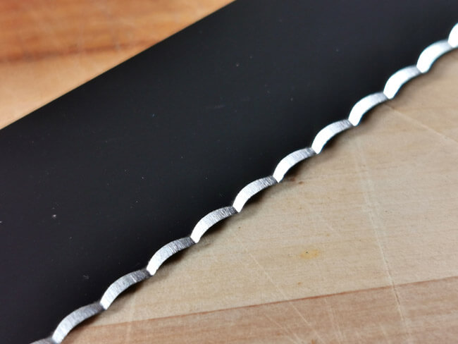 Steakmesser, Pizzamesser, Tomatenmesser und Brotmesser, sie alle verfügen über einen Wellenschliff. Die Zähne des Wellenschliffs sind perfekt für Produkte, die außen hart und glatt sowie im Inneren eher weich sind. Wie zum Beispiel Brot. Ohne Druck und mit ruhigen Sägebewegungen findet die Klinge sofort einen Ansatz auf der Kruste und schneidet danach mühelos durch die weiche Krume, ohne sie zu zerreißen. Ein Wellenschliff variiert in der Spitze der Zähne, der Tiefe der Wellen sowie in der Anzahl der Zähne und Wellen im Verhältnis zur Klingenlänge. Bei einem doppelten Wellenschliff finden sich innerhalb der einzelnen Wellen viele kleine Wellen. Eine weitere Variation ist ein Wellenschliff mit Zähnen in unterschiedlicher Höhe.