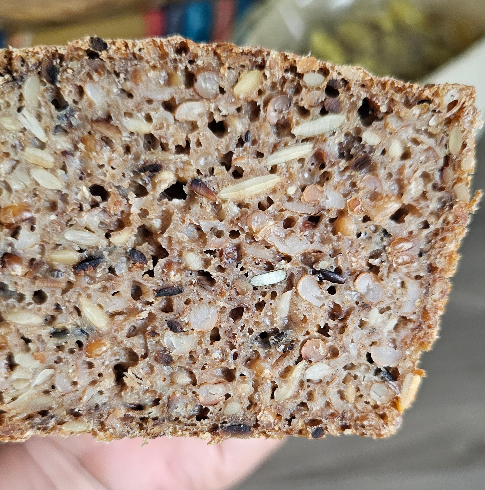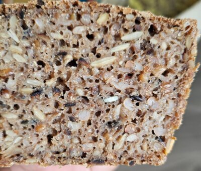 Hallo Renê, das Brot schmeckt großartig und hat im Prinzip genau die Ausgewogenheit von Krume und Korn, die ich sehr mag. Ich habe Dinkel genommen (Weizenintoleranz) und daher ca 100 g weniger Wasser verwendet. Trotz Verlängerung der Backzeit und 98 Grad Kerntemperatur war das Brot im innersten Kern noch zu feucht und glitschig. Was sollte ich anders machen? Liebe Grüße aus Wien, Dagmar