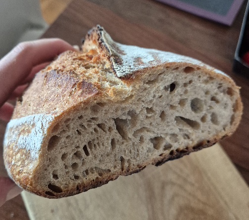 Ich habe vergangene Woche ganz stolz das erste Brot aus meinem eigenen Sauerteigstarter gebacken (nach diesem Rezept). Leider konnte ich mich nicht ganz an die Zeitangaben halten, da ich einfach zu spät am Tag angefangen habe. Das Ergebnis war dennoch schon ganz gut :).