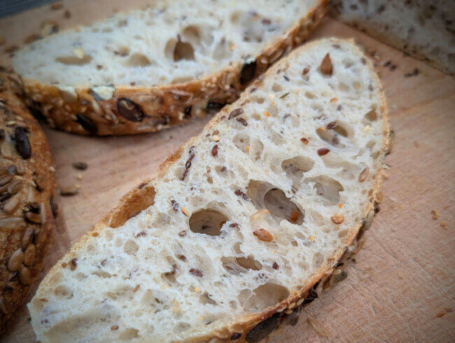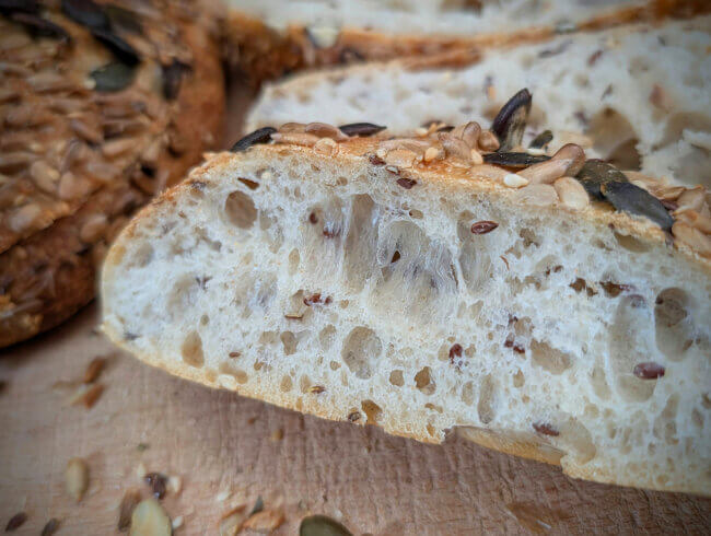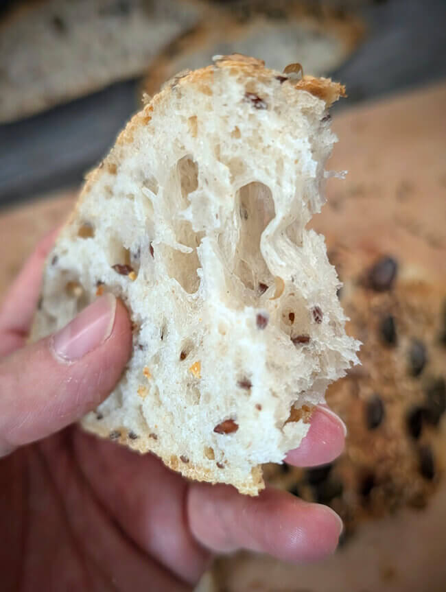 In Italien selbst gibt es zwar moderne Bäckereien, die mit Saaten oder Vollkornmehlen experimentieren, aber das sind keine klassischen Varianten, sondern eher Neuerfindungen für den Geschmack oder die Gesundheit. In Deutschland, Österreich, der Schweiz und den USA sind Körner-Ciabatta oder Vollkorn-Ciabatta schon etwas häufiger zu finden (wenn auch nicht wirklich weit verbreitet), oft mit Sonnenblumenkernen, Leinsaat, Sesam oder einer Mischung aus Saaten.
