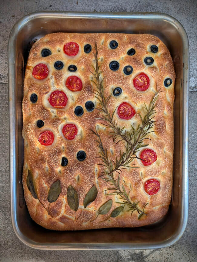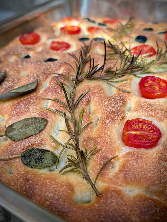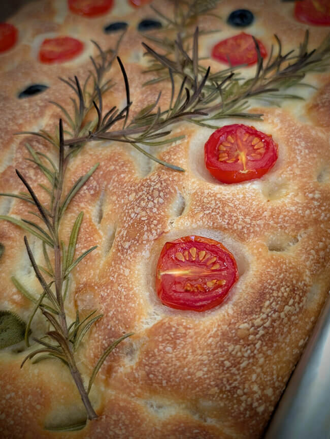 Bei meinem Rezept musst du dir darüber keine Sorgen machen. Aber häufig liegt das an zu wenig Zeit für die Teigruhe, zu niedriger Hydration oder falscher Gare. Wenn du dieses Rezept nachbacken wirst, musst du keine seelenlose trockene Focaccia erwarten, ganz im Gegenteil.