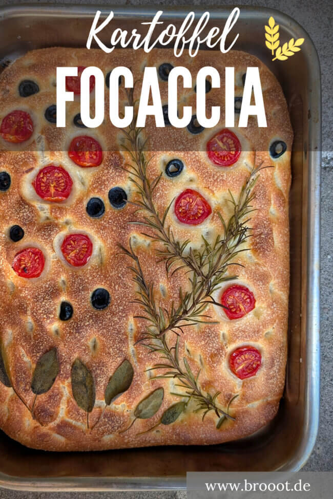 Früher galt Focaccia übrigens gleichzeitig als Arme-Leute-Brot und als Festtagsgebäck. Sie war einfach und günstig herzustellen, wurde aber in Genua so sehr geliebt, dass man sie sogar bei Hochzeiten, Beerdigungen und, kein Scherz, in der Kirche essen durfte. Heute ist Focaccia ein Klassiker, der fast überall auf der Welt bekannt ist. Meine Variante spielt etwas mit den Zutaten. Hier kommt die Kartoffel in gestampfter Form in den Teig und färbt so die Krume nicht nur, sondern macht sie auch noch schön aromatisch, länger frisch haltend und sanfter. Eine tolle Variante für einen tollen Klassiker. Und auf der Oberfläche der Focaccia habe ich mit Tomaten, Oliven, Rosmarin und Salbei optisch aufgepeppt.